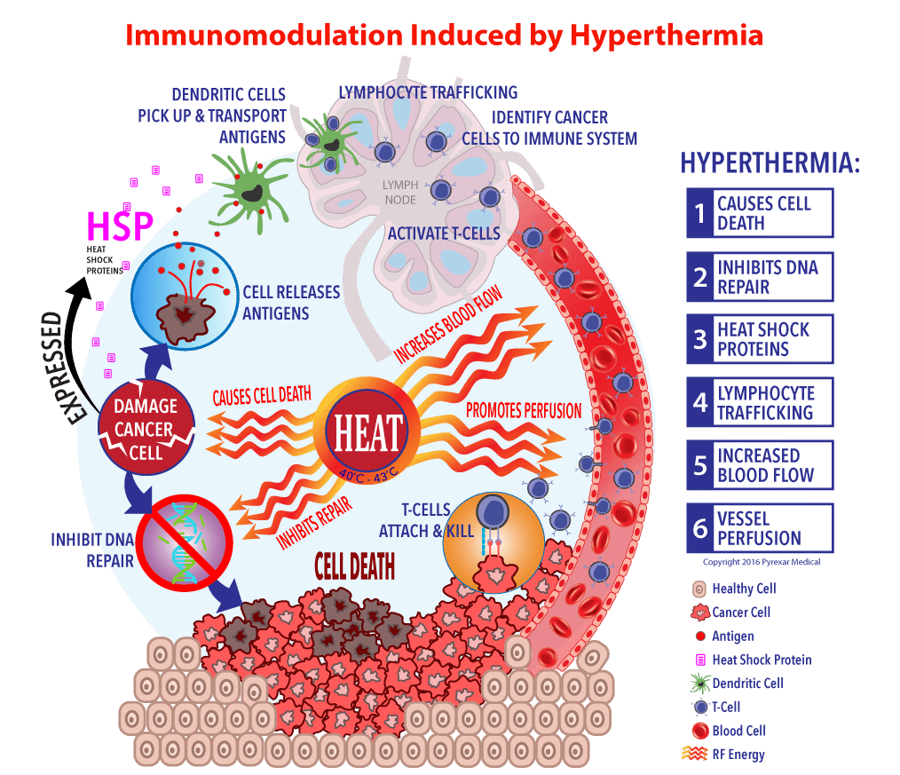 אירגון האונקולוגים האמריקאי ASCO (American Society of Clinical Oncology) פרסם תוצאות מחקר ב2017 בו נמצא כי הוספת היפרתרמיה לטיפול כימותרפי בחולי סרטן שונים מכפילה את יעלות הטיפול.